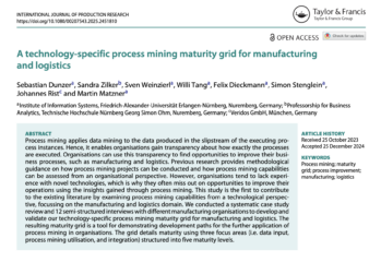 In unserem jüngsten Projekt haben wir untersucht, wie Process-Analytics-Projekte durch domänenspezifische Fragestellungen profitieren können, anstatt sich nur auf allgemeine Kennzahlen wie Frequenzen und Durchlaufzeiten zu konzentrieren. Wir entwickelten ein Reifegradmodell, das Process Mining Maturity Grid, das aufzeigt, welche technologischen Fähigkeiten Unternehmen im Bereich Fertigung und Logistik für das Process Mining aufbauen können. Dieses Modell ist im renommierten International Journal of Production Research veröffentlicht und frei zugänglich.